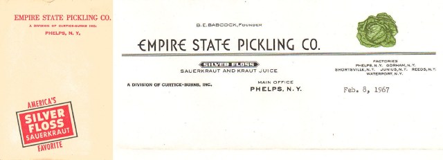 Birton E. Babcock was born on May 20, 1870, in Clyde, Ohio. Mr. Babcock left home as a young man with $25 in his pocket to attend Wooster College in Wooster, Ohio, graduating in 1894 and attended Lane Theological Seminary in 1898. Mr. Babcock moved to the Finger Lakes area in 1901, with his wife, the former Edna Charlotte wilder, and purchased a sauerkraut factory for $4,000 ($1,000 down). From his humble beginning, Mr. Babcock built a sauerkraut empire known as Empire State Pickling Company, a million dollar business that produced one third of the nation’s kraut and was known as the “Kraut King”. Phelps still celebrates a Sauerkraut festival every year.