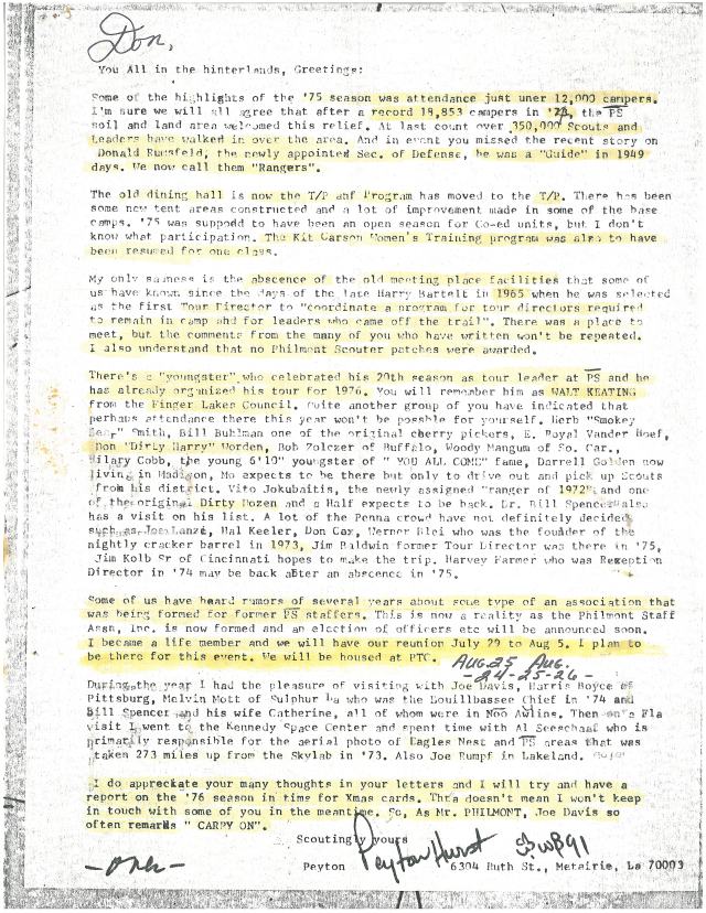 This is a nice treat for you that may have never seen this letter before. This letter mentions Walt Keating several times. I especially like how the Philmont Staff Association started in 1975. The Babcock Hovey Alumni Association got its start 35 years latter. I think we have a little catching up to do before we can catch to them! The Babcock-Hovey Alumni Association concept started after I visited Philmont and heard of the Philmont Staff Association.