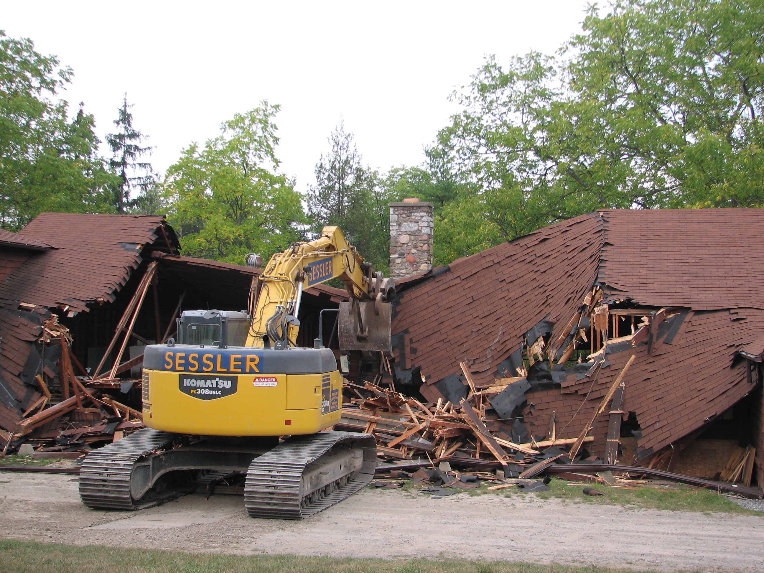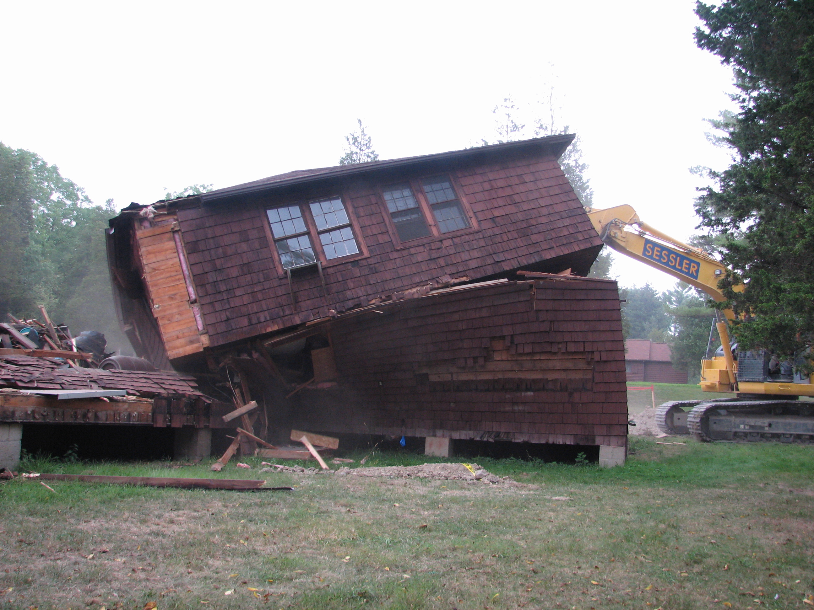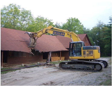Over the years Hovey Lodge had served camp in many different functions. By 2007 it was housing the Hovey Museum, OA Lodge and the large area served as material storage for the camp ranger. Hovey Lodge was not insulated and as thus was usually too hot to use during the summer and to cold to use during the winter. In addition to the above and due to structural integrality issues of Hovey Lodge, Hovey Lodge either needed over $750,000 in order to stabilize the foundation and make it completely winterized for off season use or it needed to be replaced with a more useable lodge. It was decided to replace Hovey Lodge. The Old Hovey Museum was packed up and placed into storage in the basement of a local bank for many years. Ganeodiyo Lodge also had to move all of its items to storage in various places around camp. All the other stored material in the main part of Hovey Lodge was either salvaged and put into storage on and off camp property or removed with the building when the building was demolished. Sessler Construction donated the time for the demo work and Hovey Lodge was completely demolished by the end of October 2007.